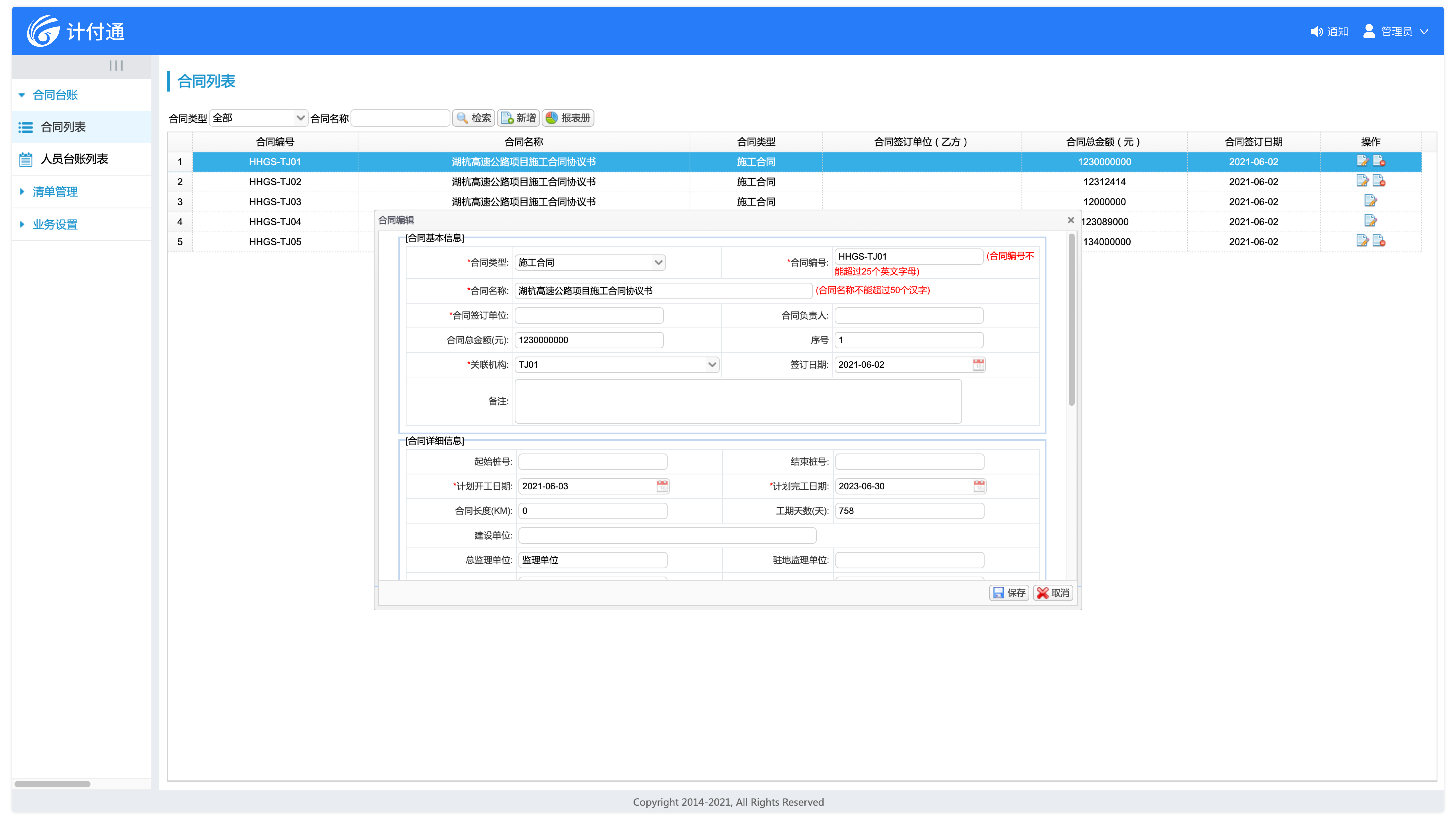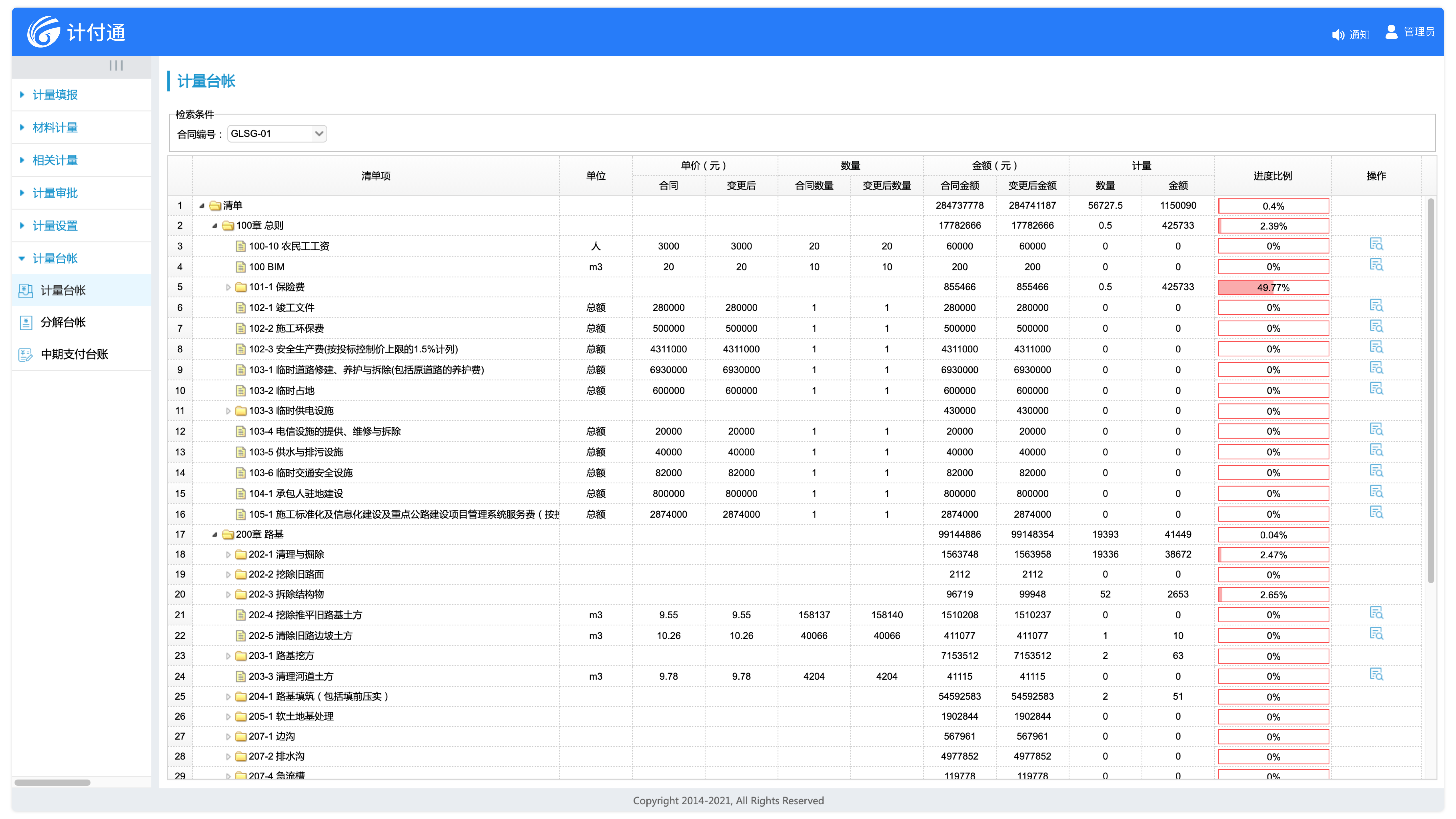 合同管理基本信息詳盡,約束條款中內(nèi)置各類計(jì)量依據(jù),是整個計(jì)量支付業(yè)務(wù)的源頭。