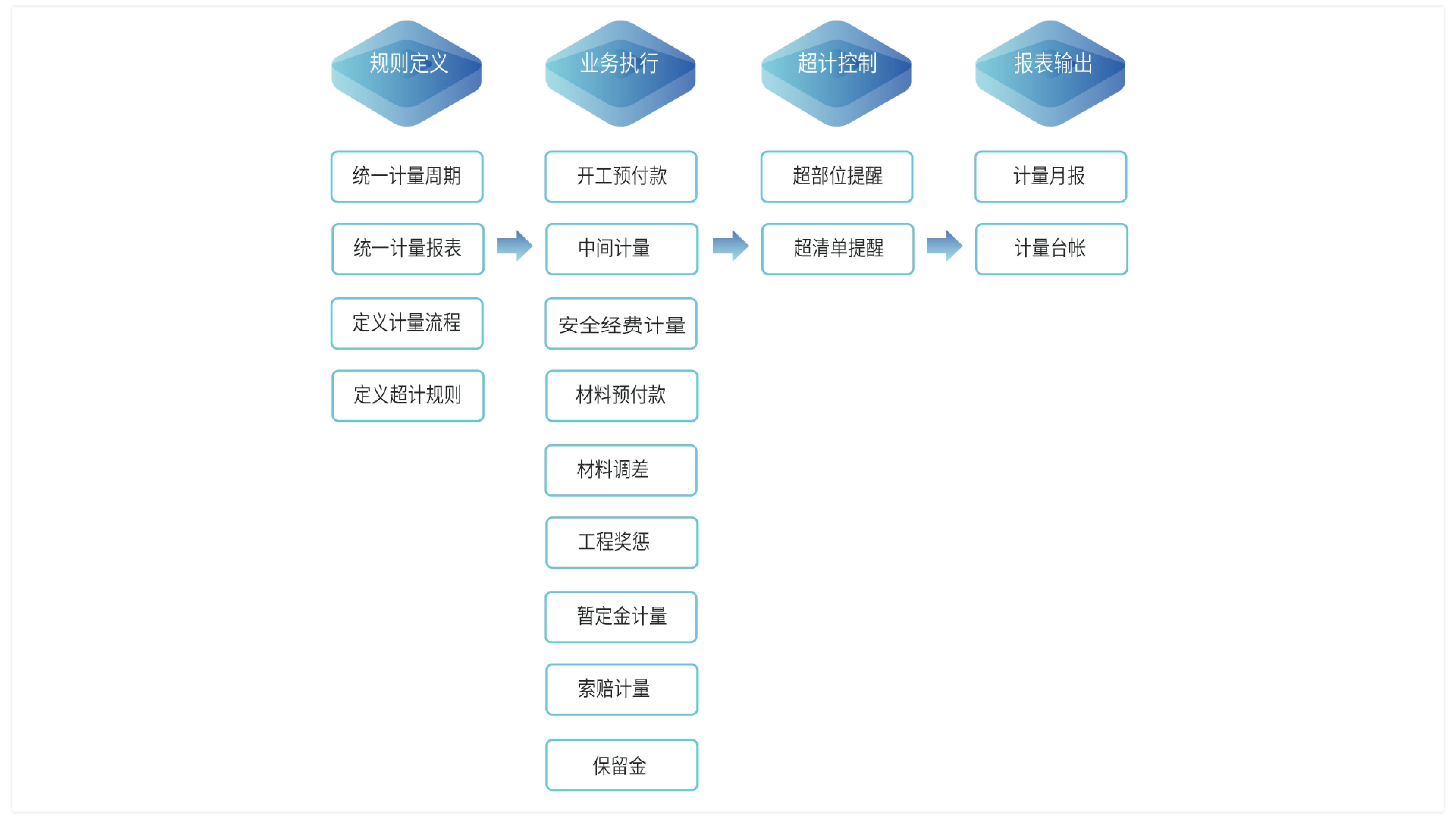 工程計(jì)量多方協(xié)調(diào),流程規(guī)范,程序合規(guī),適用多種承發(fā)包模式下的多種計(jì)量方式,計(jì)量支付全過程實(shí)時監(jiān)控,動態(tài)透明,程