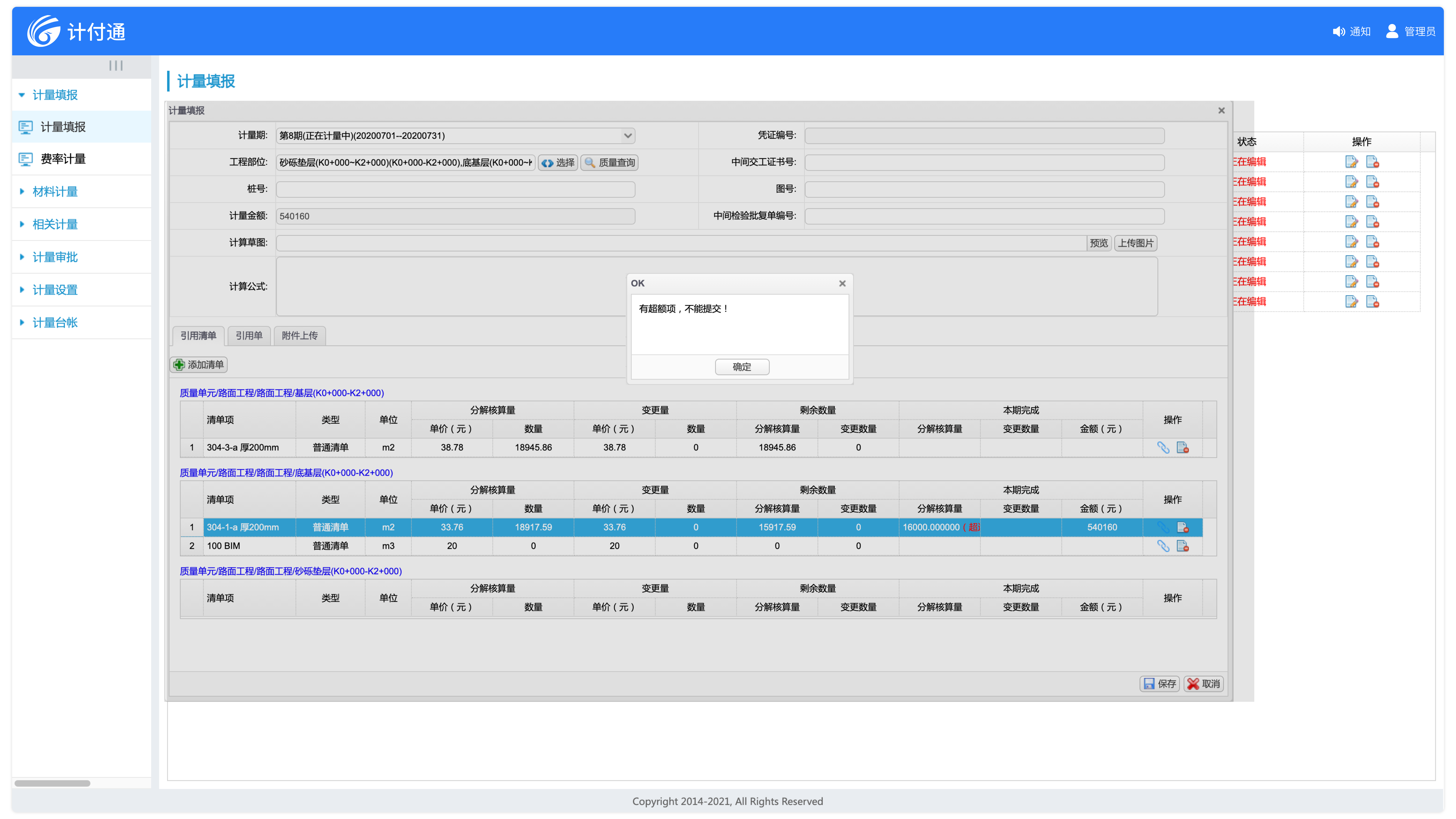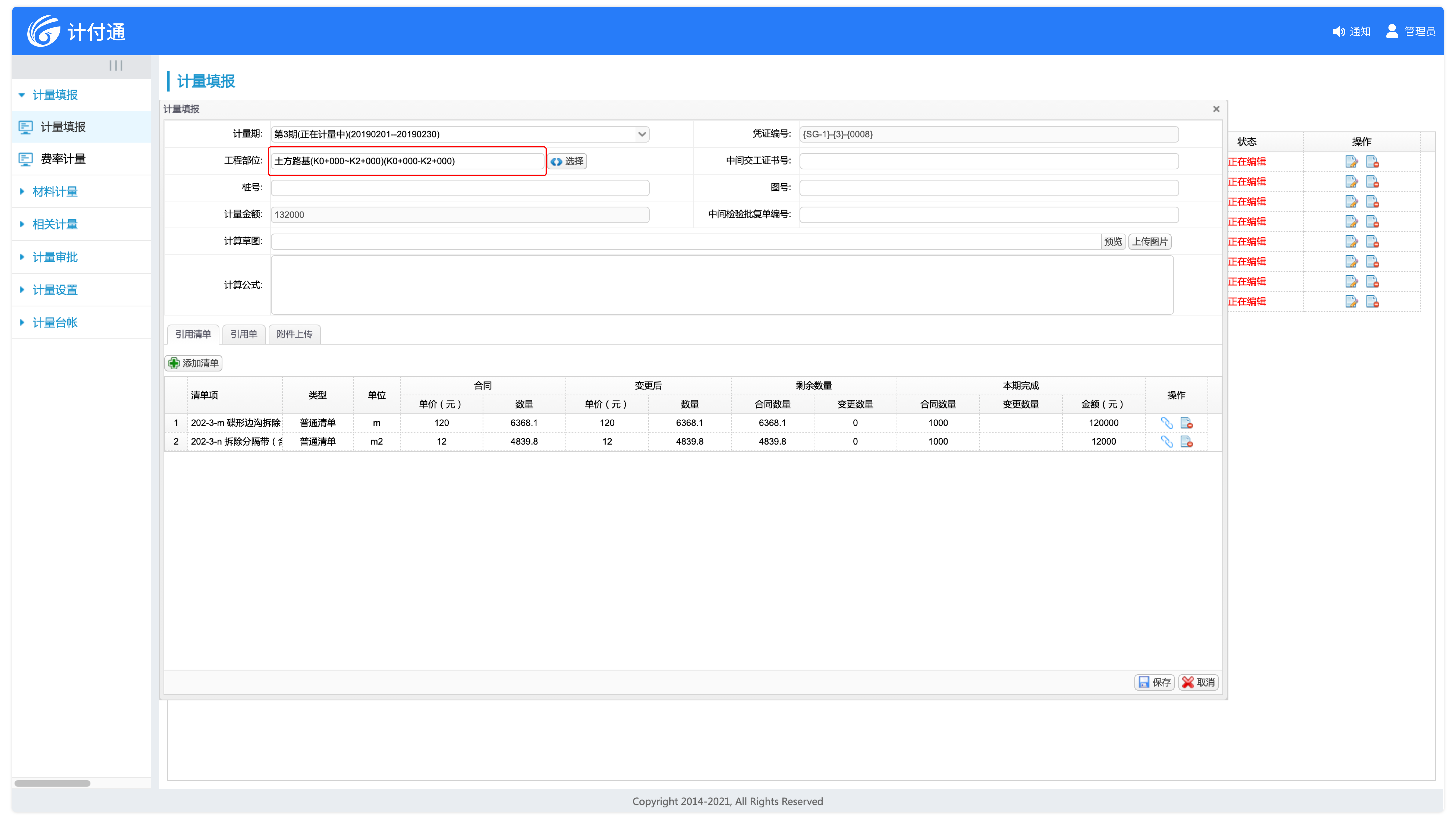 適應(yīng)多種計(jì)量模式,既支持按照合同清單總量進(jìn)行計(jì)量,又能按照工程部位進(jìn)行計(jì)量。