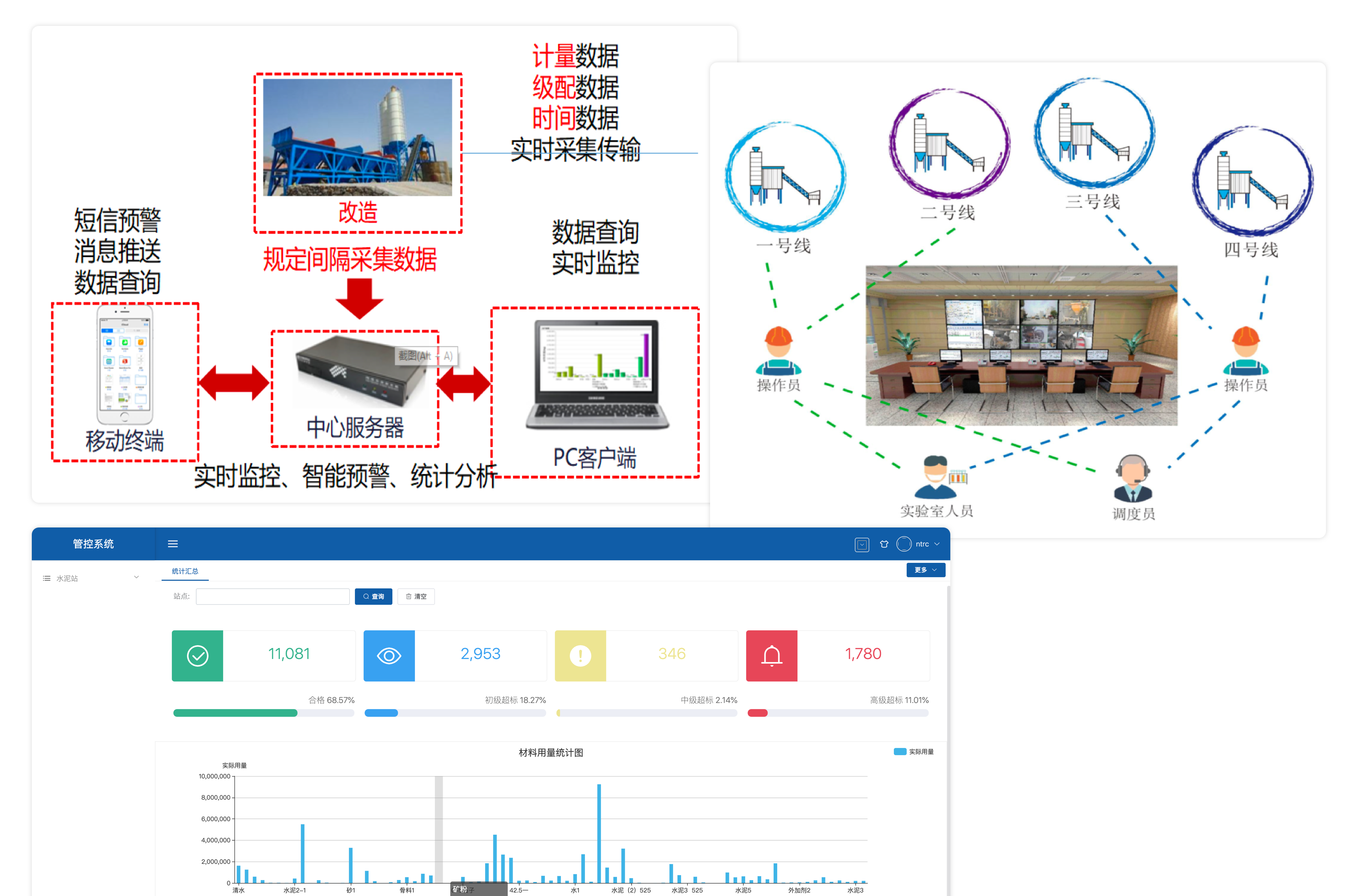 警,實(shí)時掌控混凝土、水穩(wěn)、瀝青材料的生產(chǎn)過程,確保出產(chǎn)材料的質(zhì)量達(dá)標(biāo)。