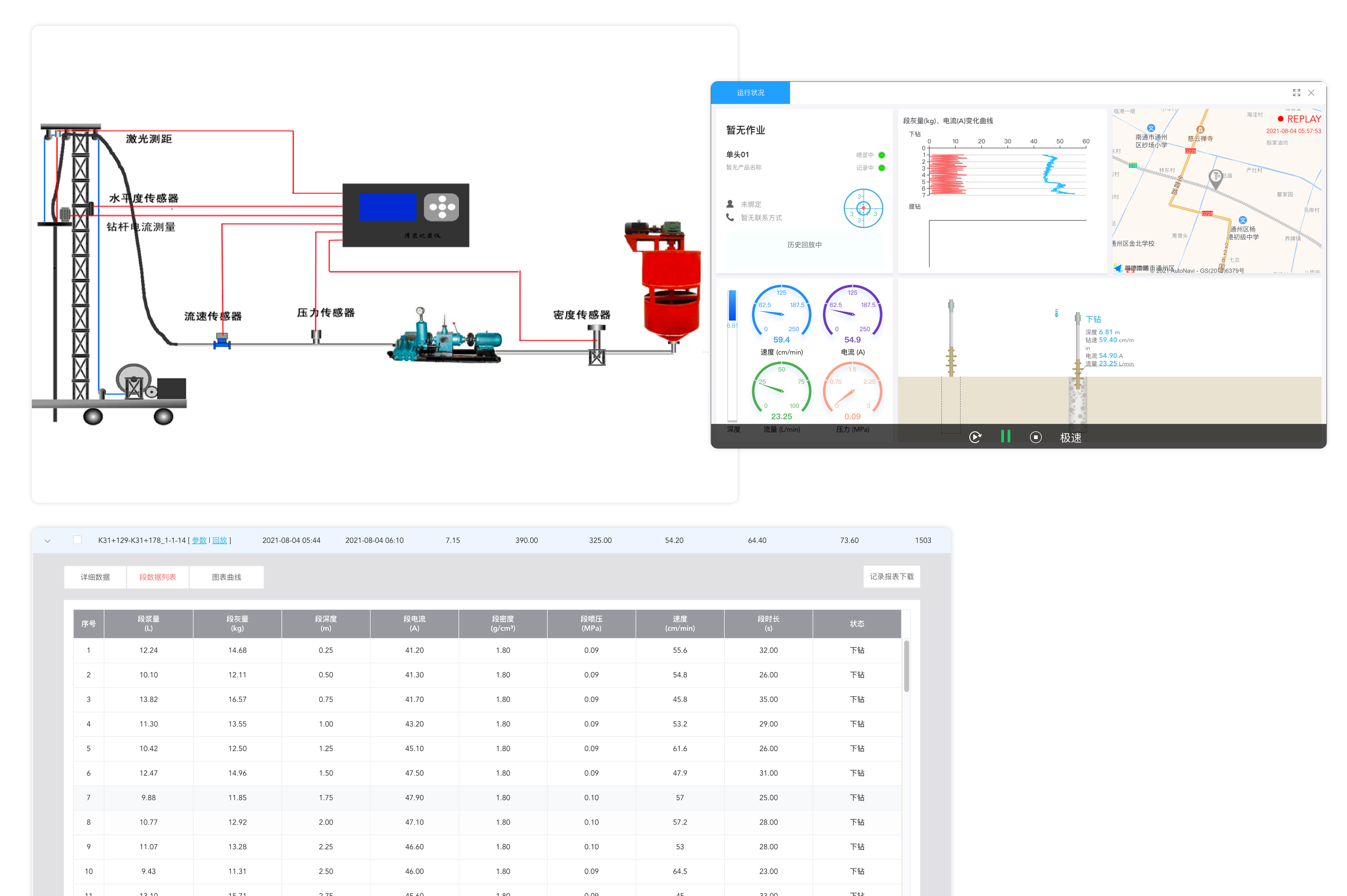 利用高精度定位,物聯(lián)網(wǎng)傳感器等技術(shù),在施工過程中實(shí)時采集鉆樁深度、鉆樁速度、鉆桿電流、傾斜度、水泥漿流量、材料