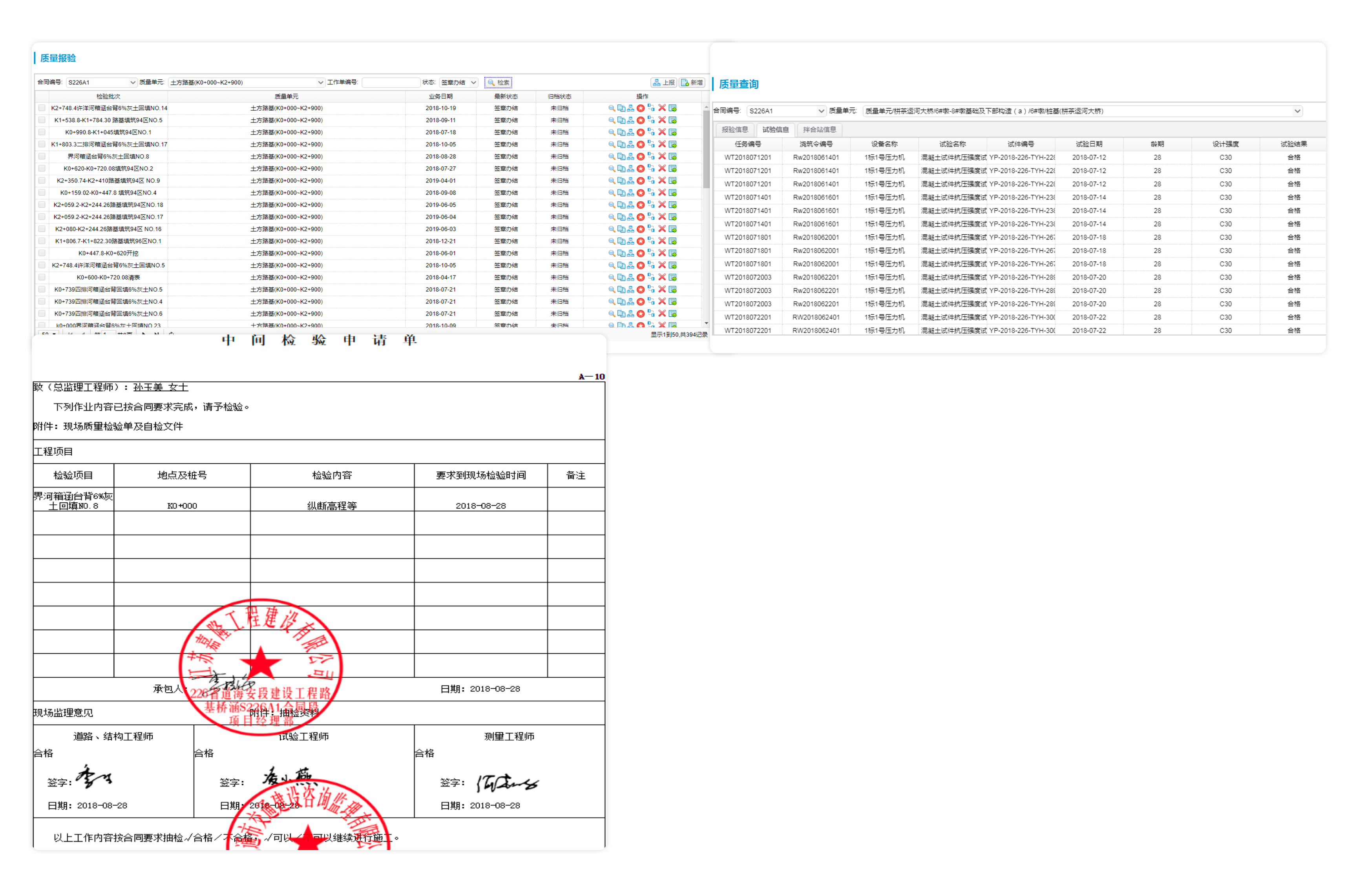 質(zhì)量管理業(yè)務(wù)全鏈打通,質(zhì)量報(bào)驗(yàn)關(guān)聯(lián)拌合生產(chǎn)、試驗(yàn)檢測、張拉壓漿等全面數(shù)字化。